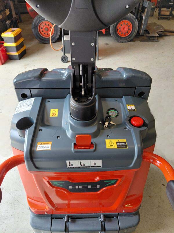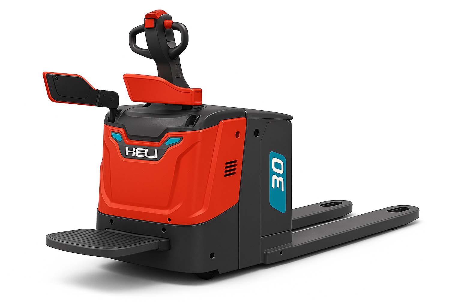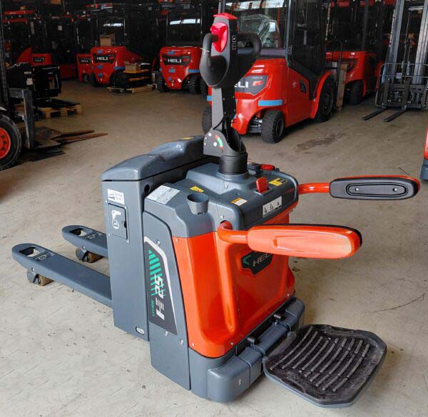 HELI CBD25-A2FLIH litiumakullinen lavansiirtovaunu ajoläpällä ja sivutuilla, perässä kävellen tai läpällä seisten. Markkinoiden nopein lavansiirtovaunu.